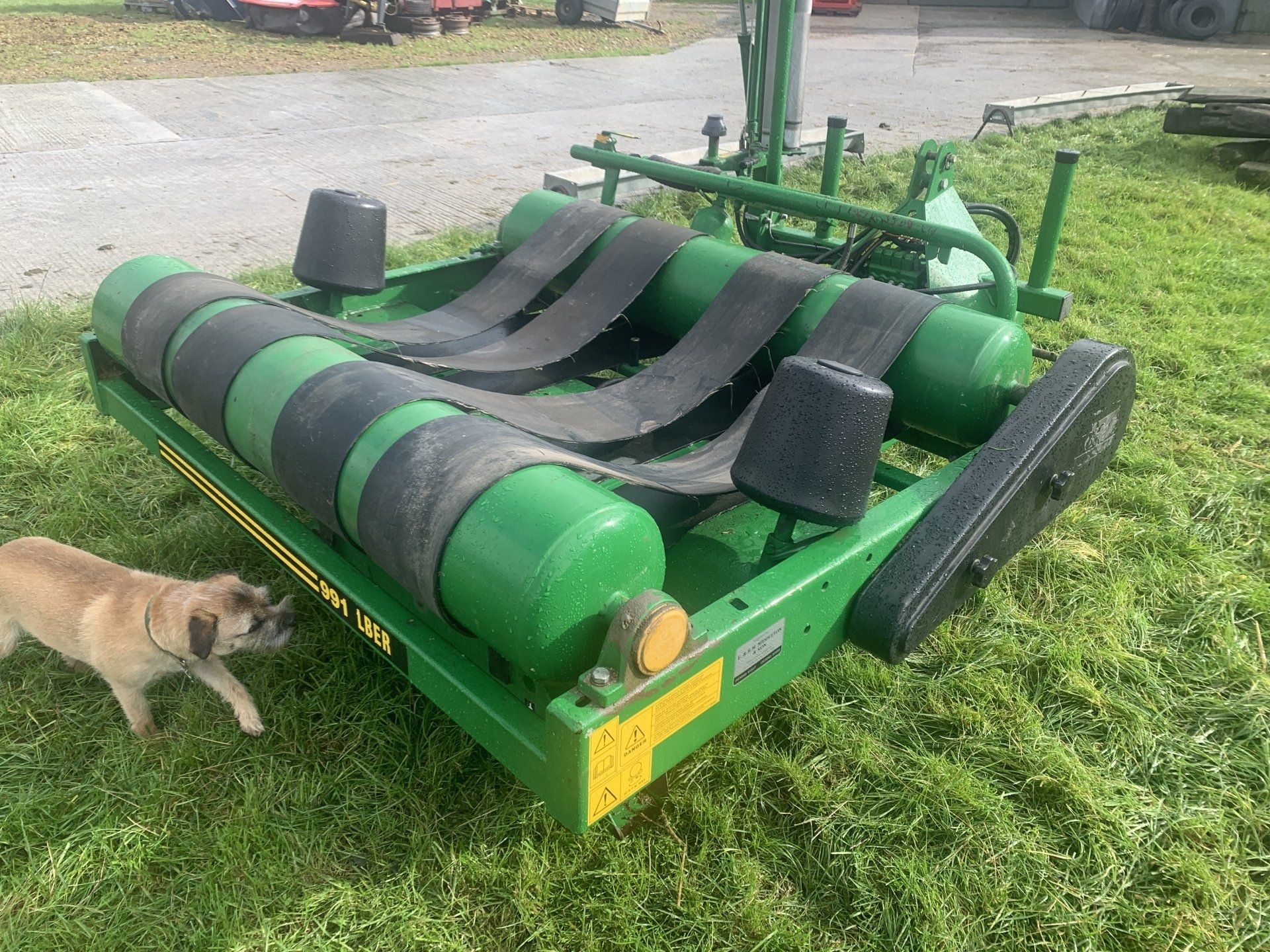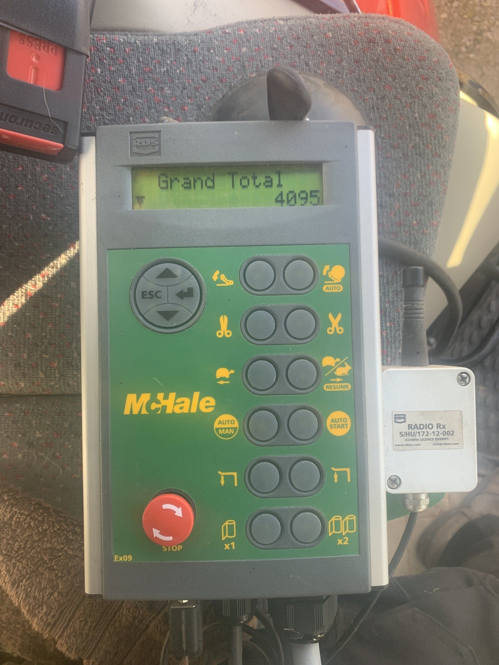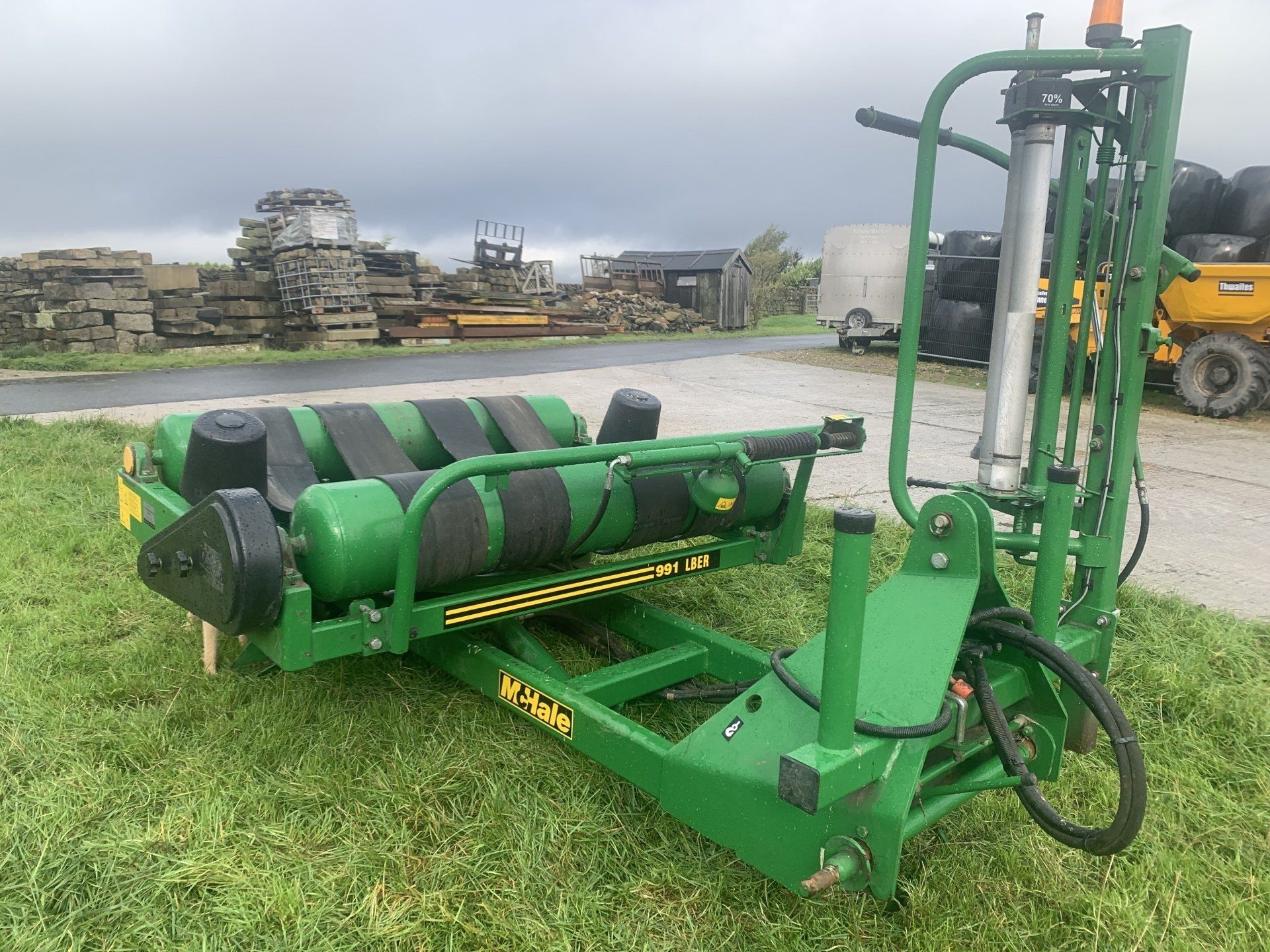This machine has the optional RF Controls so can be operated Wirelessly from the tractor you are loading the wrapper with. Just sit this next to the bale stack on another machine and its a 1 man job.